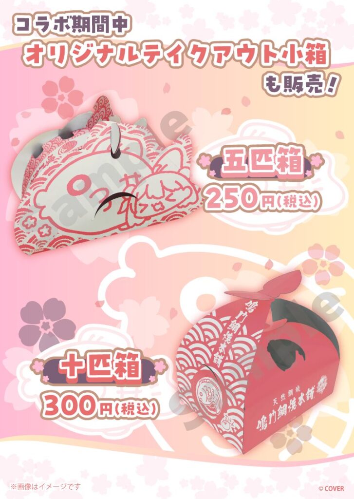 - 限定特典: オリジナル1匹袋、テイクアウト小箱、さくらみこ鳴門鯛焼新聞