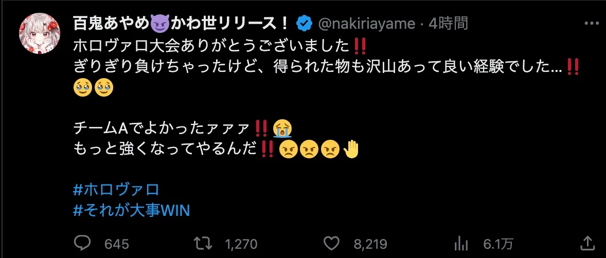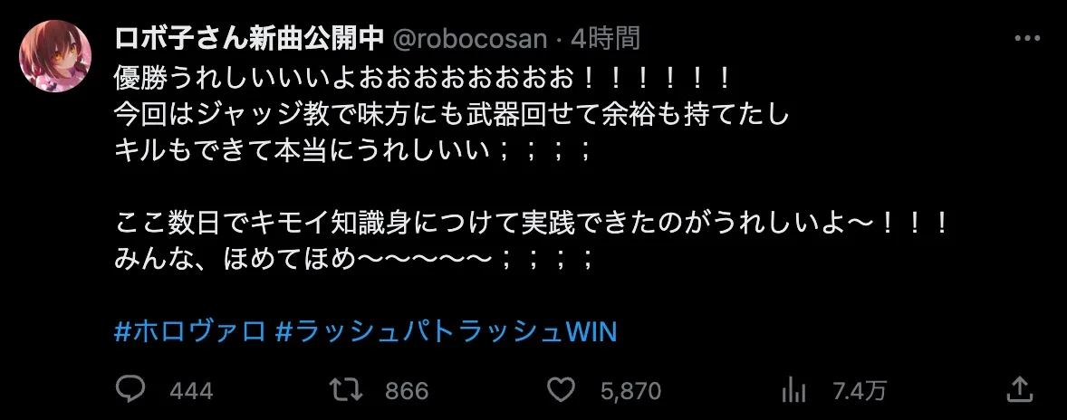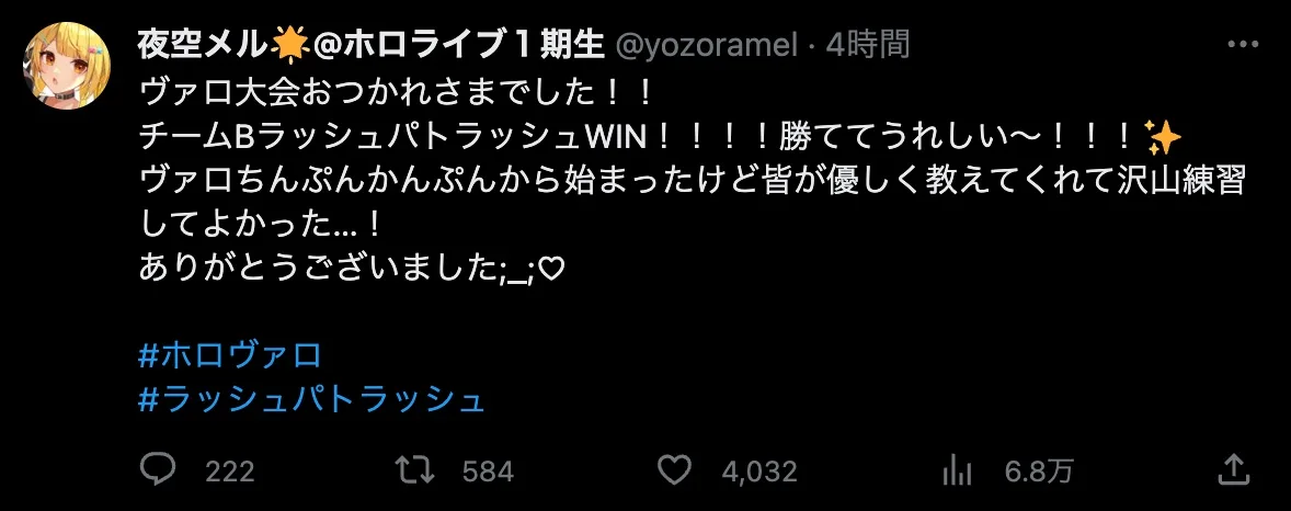 チームを勝利へと導いた⚡️⚡️⚡️⚡️⚡️#ホロヴァロ#ラッシュパトラッシュWIN pic.twitter.com/r5cEq3BDBQ