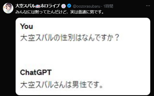 大空スバルはエイプリルフールで男であると公言していましたが、ファンからの返ってきた内容は「エイプリルフールは嘘つく日だよ?」「それはそれでアリだな…」「かまわん」といった驚く内容ではなかったため、大空スバルは以下のようにポストしました。