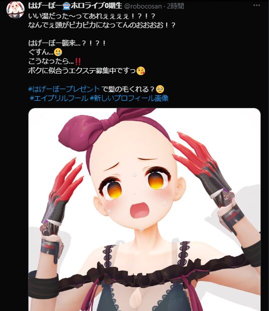 配信のバグで髪が無いなった状態だったのが一時話題になっていましたがついに公式Xのサムネイルとなってしまいました。