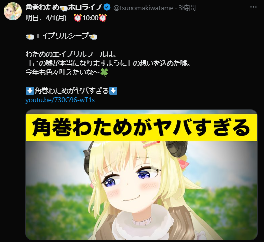 他にもホロメンが4月1日に投稿するものがあるのですが「嘘」か「本当」なのか不明だったため取り上げていません。