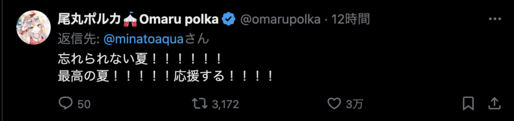 — 湊あくあ(本物) (@minatoaqua) August 6, 2024