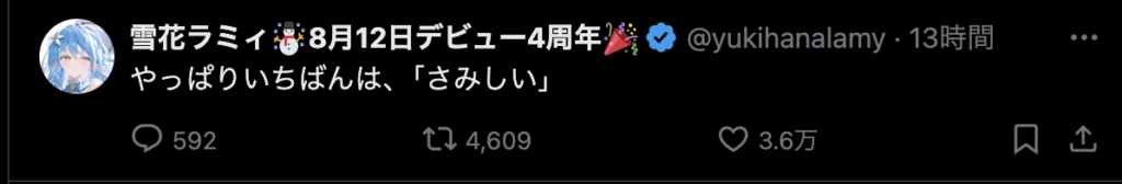 — 星街すいせい☄️ホロライブ0期生 (@suisei_hosimati) August 6, 2024