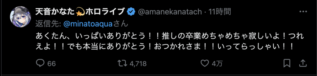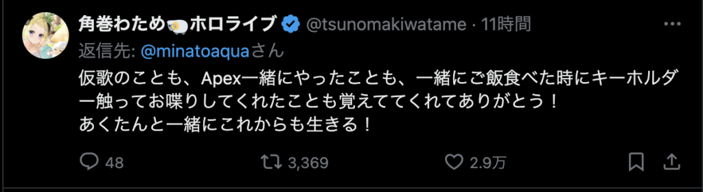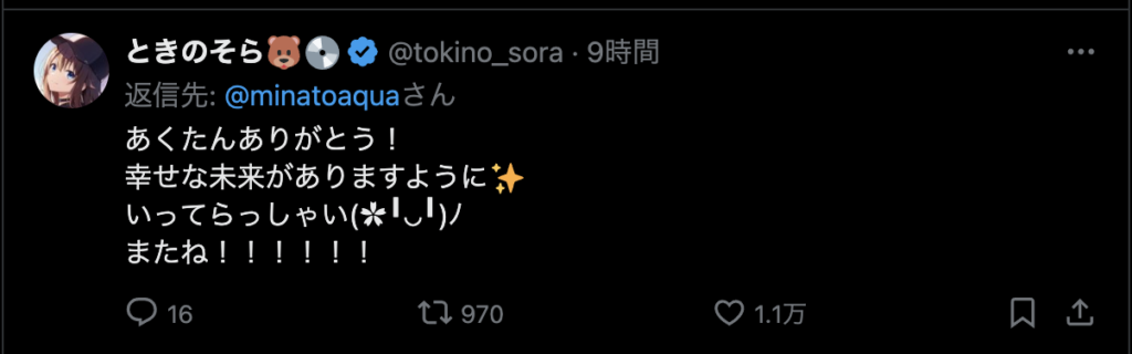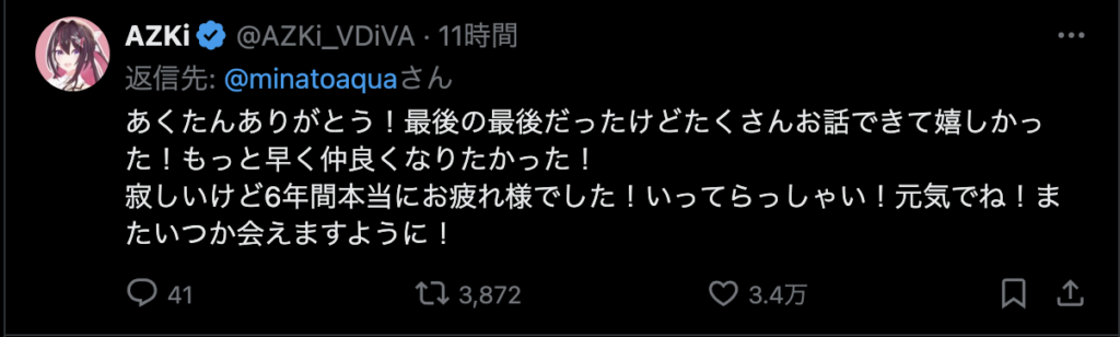 — 湊あくあ(本物) (@minatoaqua) August 28, 2024