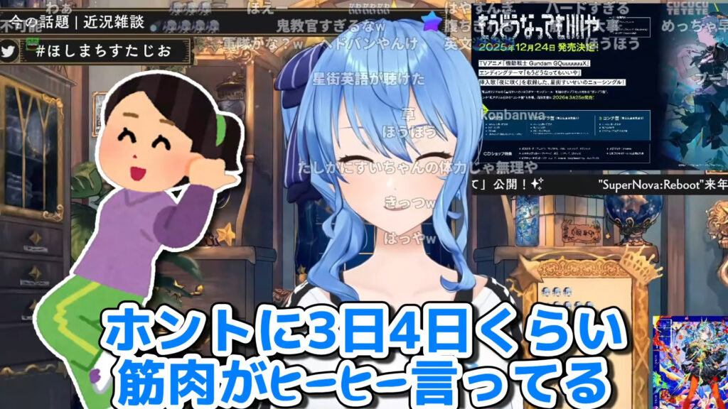 星街さん自身は「ひーひー」と悲鳴を上げながら取り組んでいるハードな内容ですが、百鬼さんはそれを楽しんでくれた様子。普段はおっとりとした話し方の百鬼さんですが、裏での努力を惜しまない姿勢と、星街さんとの仲の良さが伝わってきますね。