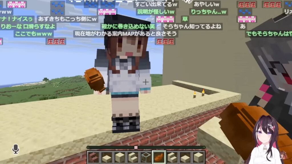 miComet企画の「ホロ鯖サマーパーク」を盛り上げるべく、建築作業をしていたAZKiさん。そこに偶然現れたときのそらさん、響咲リオナさんと意気投合したことで、水面下で期待されていた「罵倒ハウス」の建設計画が、ついに現実のものとなったのです。