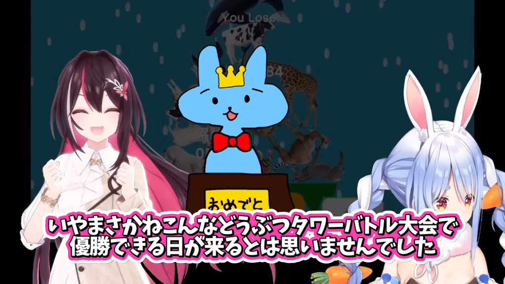 ホロライブ所属のAZKi(あずき)さんが、兎田ぺこらさん主催で最近行われた「どうぶつタワーバトル大会」にて見事優勝を果たしました。しかし、優勝が決まったのはAZKiさん自身の配信枠開始時刻のわずか5分前。勝利の余韻に浸る間もなく、超早口で対応する姿が話題となっています。