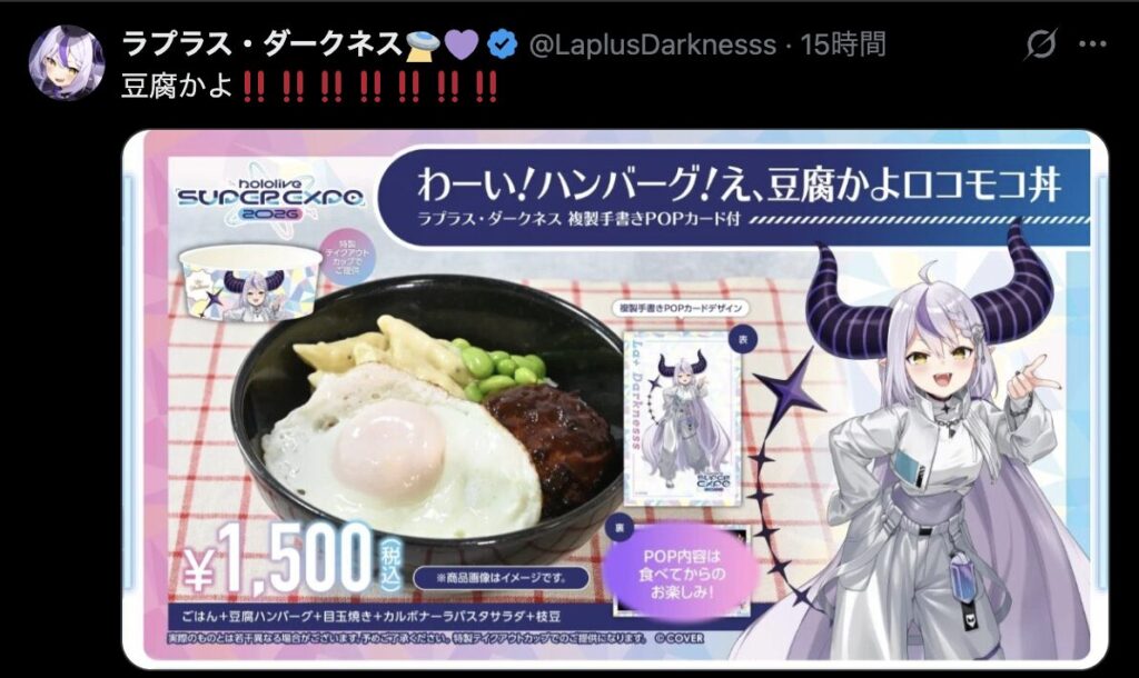 「ラプラスの『え、豆腐かよ』って絶対本人の反応をそのままメニュー名にしてるでしょwww」「大神ミオの筑前煮、普通に美味しそうで草」「POPカード目当てに全メニュー制覇したい」「こよりのポッピンコーン、ずのーって言葉まで入れてくれるの好きすぎる」「先行注文システム神、去年の待ち時間がトラウマだったから助かる」といった声が相次いでおり、メンバーへの愛情が随所に込められたメニューに反響が広がっています。