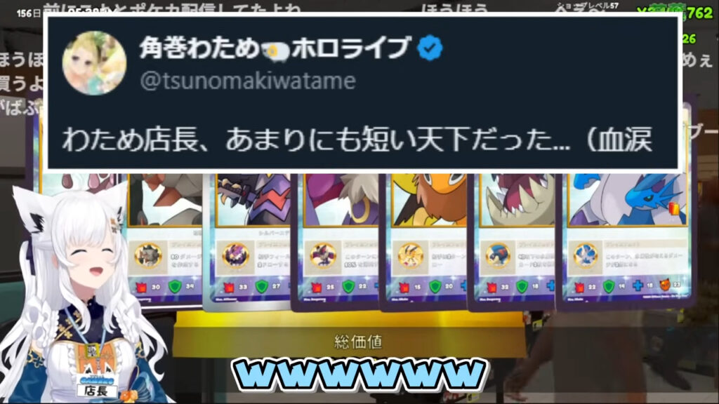 しかし、その喜びも束の間、わずか数時間後に白上フブキさんが配信外でそれを遥かに上回る1000万円超えのカードを引き当てたと報告。角巻さんの天下はあまりにも短いものとなりました。