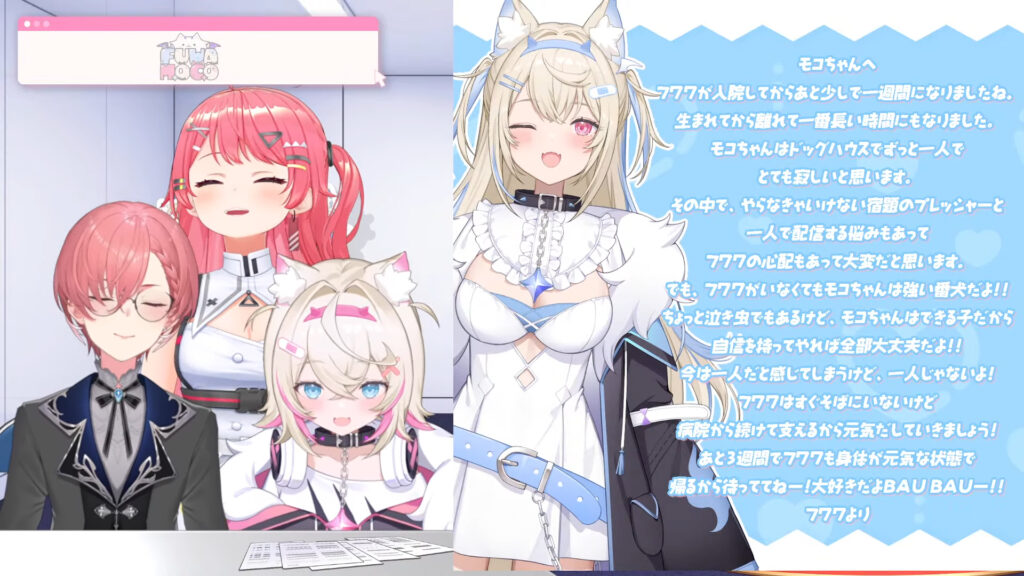 配信内では「偽フワワ」を募集するという企画で笑いを誘いつつも、終始FUWAMOCOの強い絆が感じられる内容となりました。