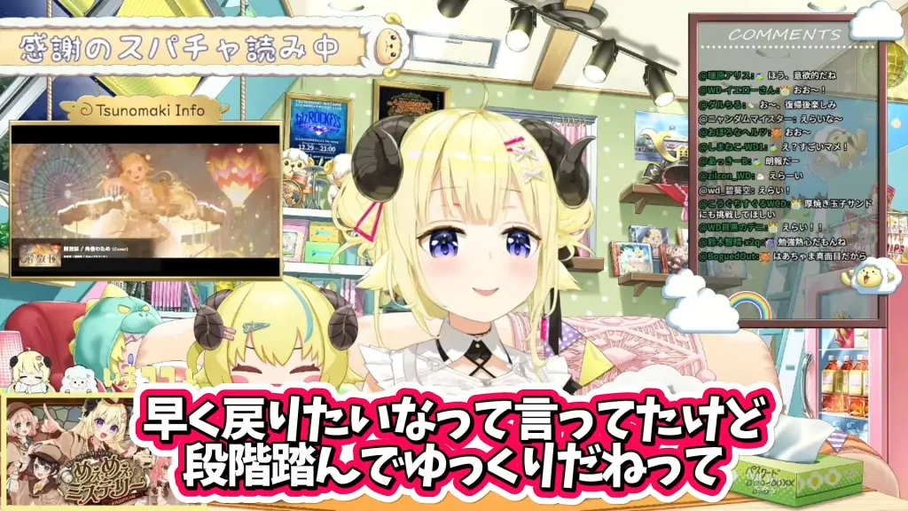 わためは「早く戻りたいなって言ってたけど、まあ段階踏んでゆっくりだねって。焦っても良くないからね」と語り、二人でそう確認し合ったことを伝えました。