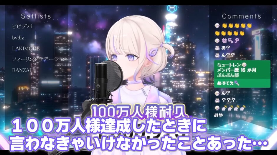 轟さんは、チャンネル登録者数100万人達成を目前にし、耐久歌配信を実施。多くのファンが見守る中、見事100万人を達成しました。達成の瞬間、轟さんはこれまでの活動を振り返り、