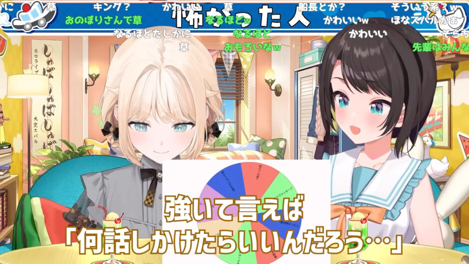 配信内のルーレットトーク企画で「最初ホロライブで怖かった人」というテーマが選ばれました。