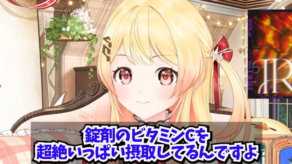 配信内で奏さんは、1日に「1万mg」を目標に、錠剤のビタミンCをこまめに摂取しつつ、ポカリスエットや水を大量に飲んでいることを明かしました。