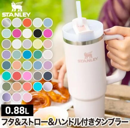 その水分補給のお供として、新しく購入した大容量の「STANLEY(スタンレー)」のタンブラー(ローズクォーツとオフホワイト)を愛用していると報告。
