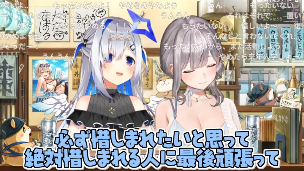 卒業までの残り時間は約2週間。「揺らぐことはない」と覚悟を決めている天音かなたさんですが、白銀ノエルさんをはじめとする仲間たち、そしてファンからの惜しみない愛に包まれていることが感じられました。
