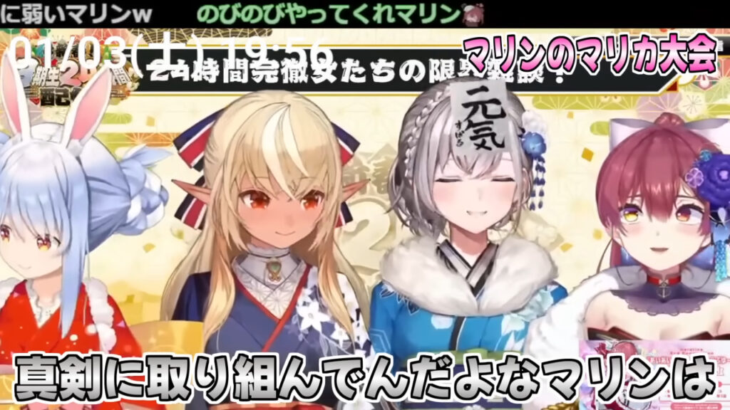 ホロライブ3期生の宝鐘マリンさんが、同期(兎田ぺこら、不知火フレア、白銀ノエル)とのコラボ配信にて、かつて恒例行事となっていた「マリオカート大会」に参加しなくなった「本当の理由」を語りました。