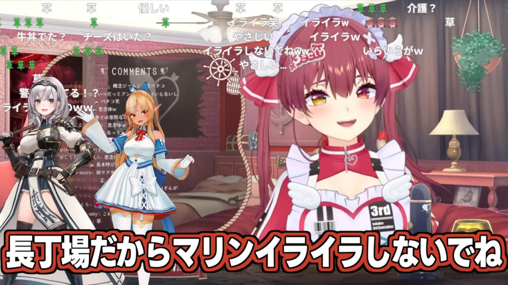 ライブ当日はリハーサルや準備を含め、かなりの長丁場。そのため、同期の不知火フレアさんと白銀ノエルさんは、朝から宝鐘マリンさんのメンタルを心配していたといいます。