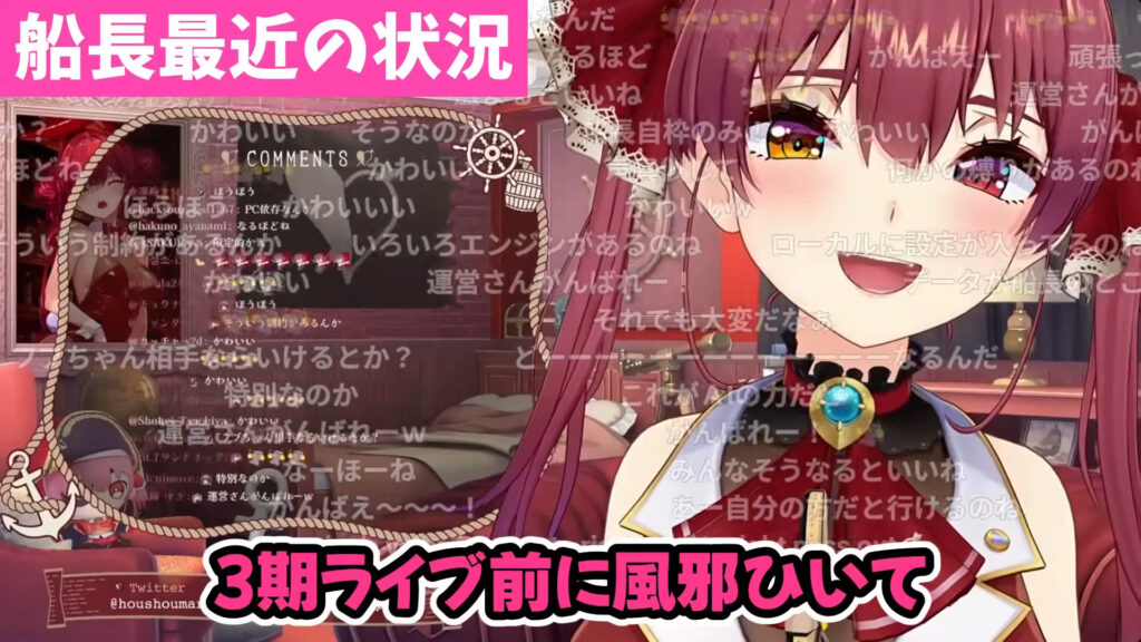 「風邪引いても配信してくれる船長すごすぎる。でも無理しないで……」