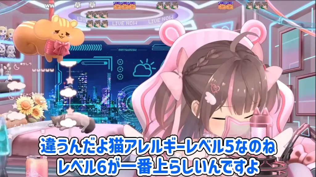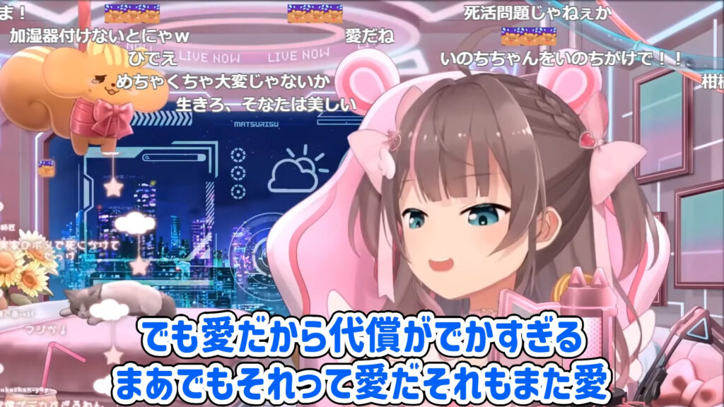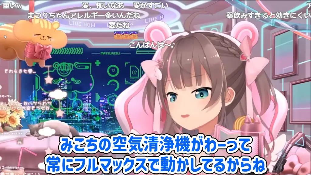 現在もアレルギーと戦いながら配信活動とペットの世話を続ける夏色まつり。季節の変わり目でさらなるアレルギー対策が必要になりますが、ペットの癒やしと空気清浄機のサポートで乗り切っていく姿勢を見せていました。