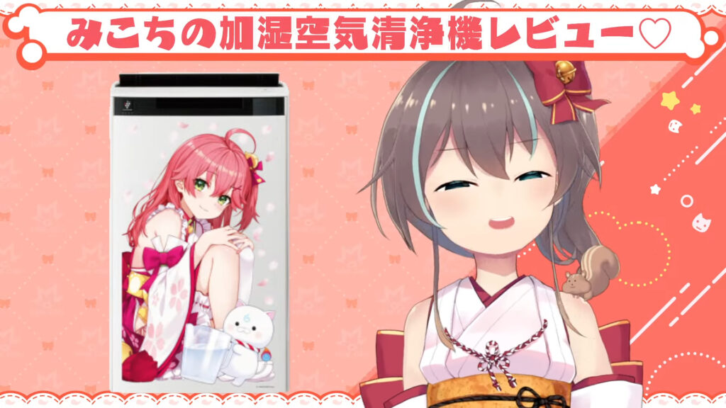使用しているのは、さくらみことシャープがコラボした「加湿空気清浄機カスタマイズサービス <さくらみこver.>」とみられ、「うちではみこちが大活躍している」と語っています。