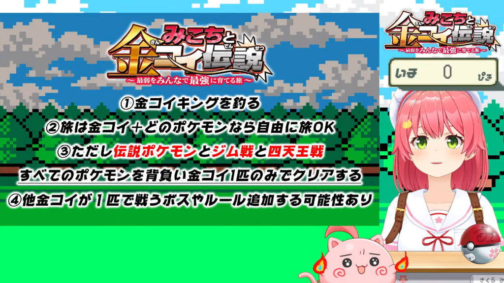 さくらみこさんがこの企画を開始したのは、2025年3月25日。「金コイ」1匹を捕獲し、共に旅を始めるという目標のために始まったこの挑戦は、長期間にわたり多くの配信で行われてきました。