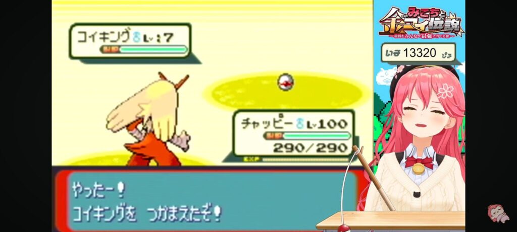 sホロライブ所属のVTuber「さくらみこ」さんが、2025年11月2日、長期間にわたる挑戦の末、ついに「金コイ(色違いコイキング)」のゲットに成功しました。