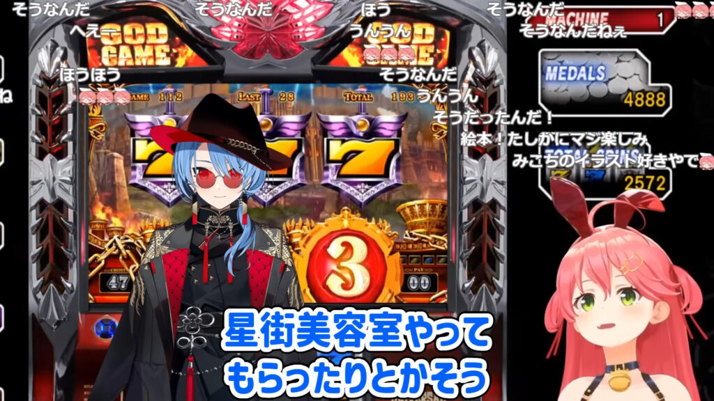 ビジュアル面での相談役として活躍するすいせいさん。「ここの前髪はもうちょっとこう切ったほうがいいかな?」といった具体的な髪型のアドバイスをくれるそうで、さくらみこさんはこれを親しみを込めて「星街美容室」と呼んでいました。