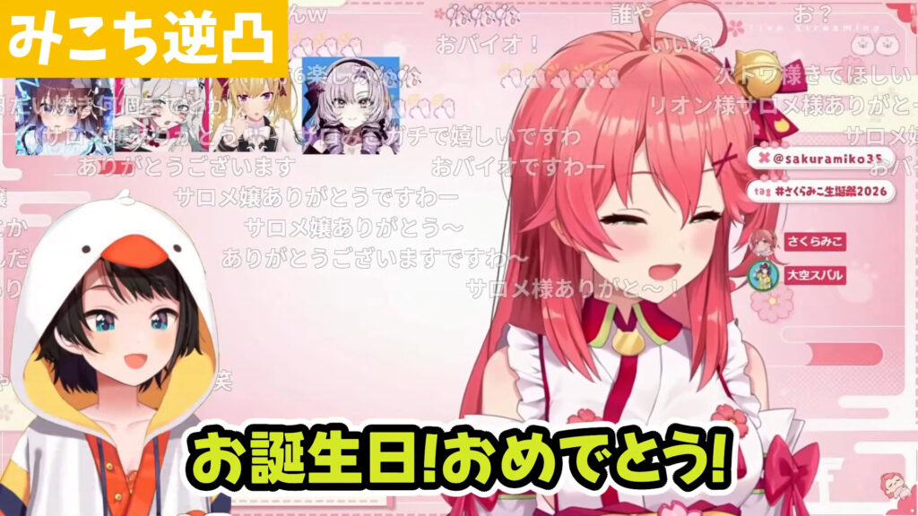 3月5日はホロライブ0期生・さくらみこの誕生日です。毎年この日にはゲストを招いた生誕祭が開催されますが、今年の前夜祭配信でも大人気コンビ「みこスバ」のほっこりするトークが話題になりました。