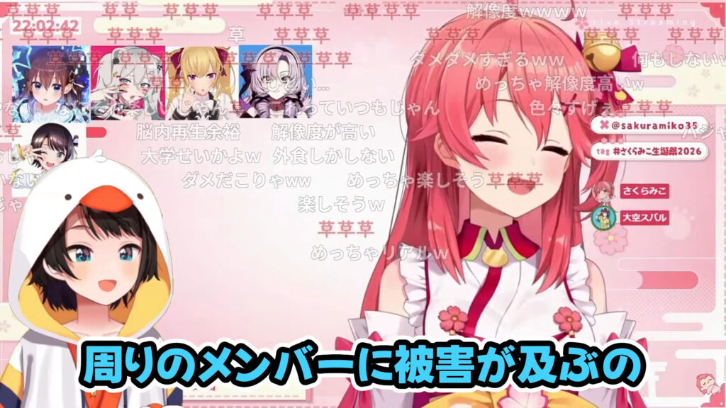 これにはスバルさんも「周りのメンバーに被害が及ぶ」とツッコミを入れました。
