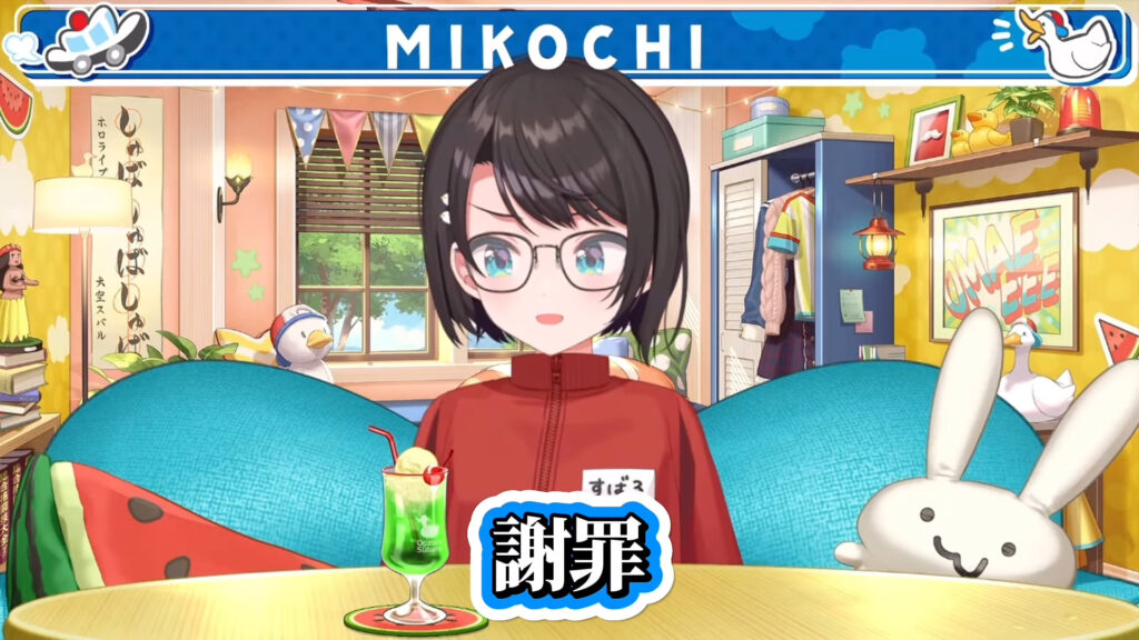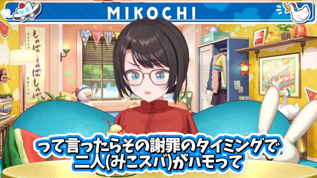スバルさんがフォローするように「謝罪」と言ったところ、なんとみこさんも全く同じタイミングで「謝罪」と発言。二人の声が完璧にハモるという、奇跡のシンクロが発生しました。