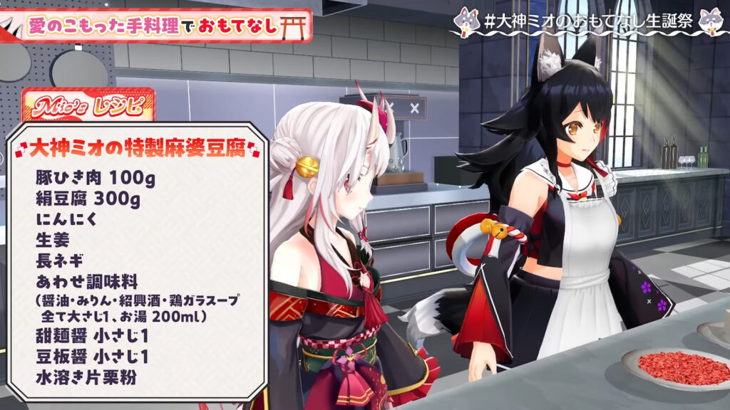 実はこのおもてなし企画、当初は同期の白上フブキさんのために「激辛麻婆豆腐」を作る予定だったとのこと。