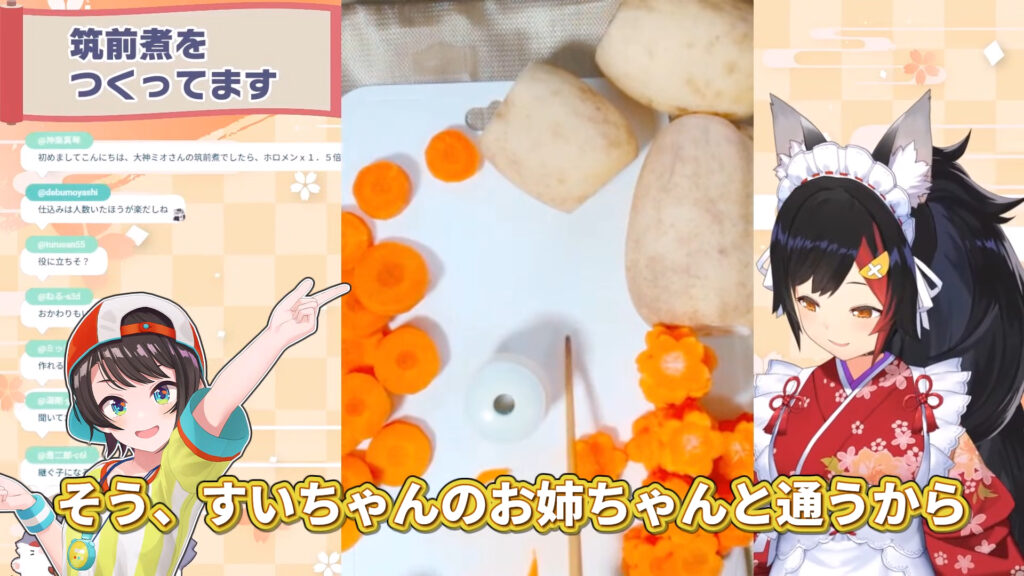 ホロライブ・大神ミオの筑前煮配信に大空スバルが突然電話!「筑前煮ファクトリー」構想と姉街との料理教室通いを発表