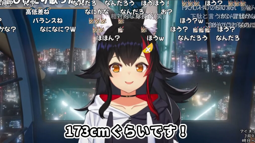 大神ミオさんは以前から自身の身長について「よくわかっていない」と話しており、配信では「うちって結構身長が迷子気味なんですよ」と語っています。