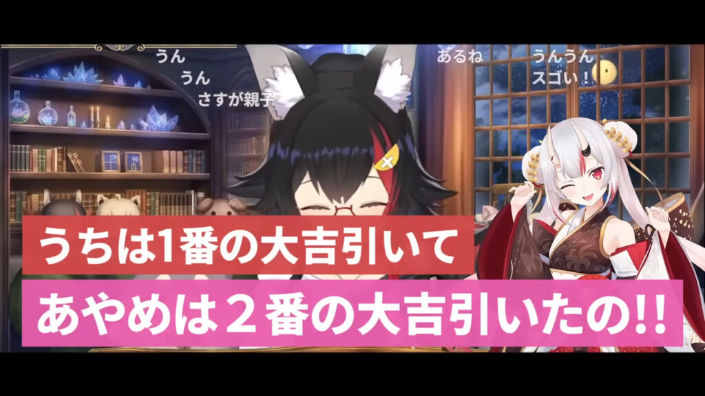 これには大神ミオも「すごくないか? ちょっとゾワッとした」と興奮気味にコメント。百鬼あやめ本人も同様に鳥肌が立ったそうで、二人の強運と絆が、こんな奇跡を起こしたのかもしれませんね。