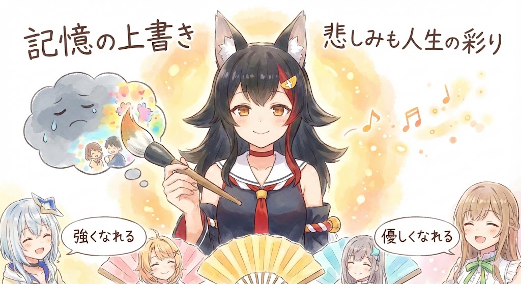 今回の配信では、傷ついたリスナーに対して「記憶の上書き」という実践的なアドバイスと、「悲しみも人生の彩り」という精神的なケアの両方を提示してくれました。