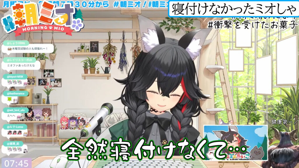 万全の準備をしたにもかかわらず眠れず、ほぼ徹夜で朝配信をやり遂げたミオさん。こうしたちょっと抜けた一面が見えると親近感がわきますよね。