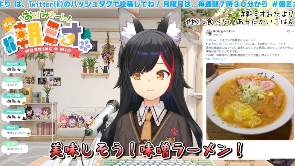 このエピソードが語られたのは、大神ミオさんが視聴者から寄せられた料理の写真を見ながら雑談する配信でのこと。北海道の「すみれ」と思われる濃厚な味噌ラーメンの写真が紹介されたのをきっかけに、ミオさんの思い出話に花が咲きました。