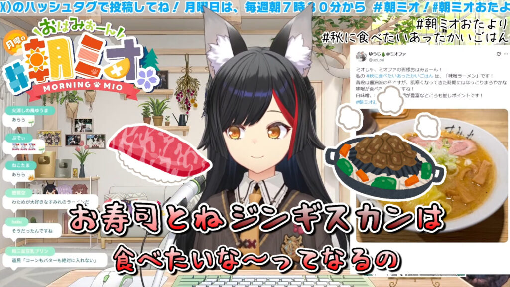 フブキの”ラーメン愛” vs ミオの”寿司・ジンギスカン愛”