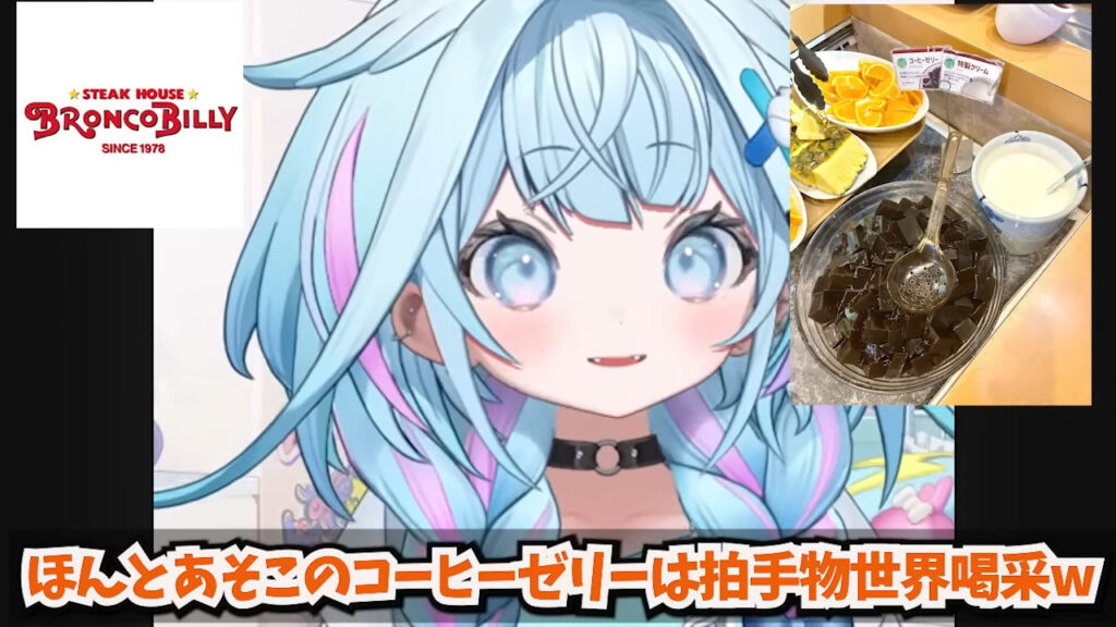 「ブロンコビリーはマジでコーヒーゼリーしか勝たん。あそこのコーヒーゼリーは、もう拍手もの、世界一。」