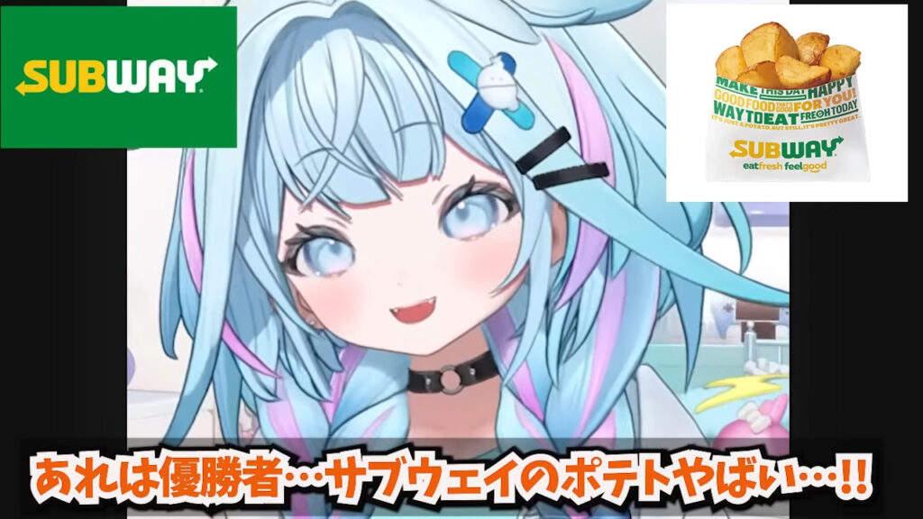 「サブウェイのポテトはもう最高。ホクホク系のナンバーワン。あれは優勝。」