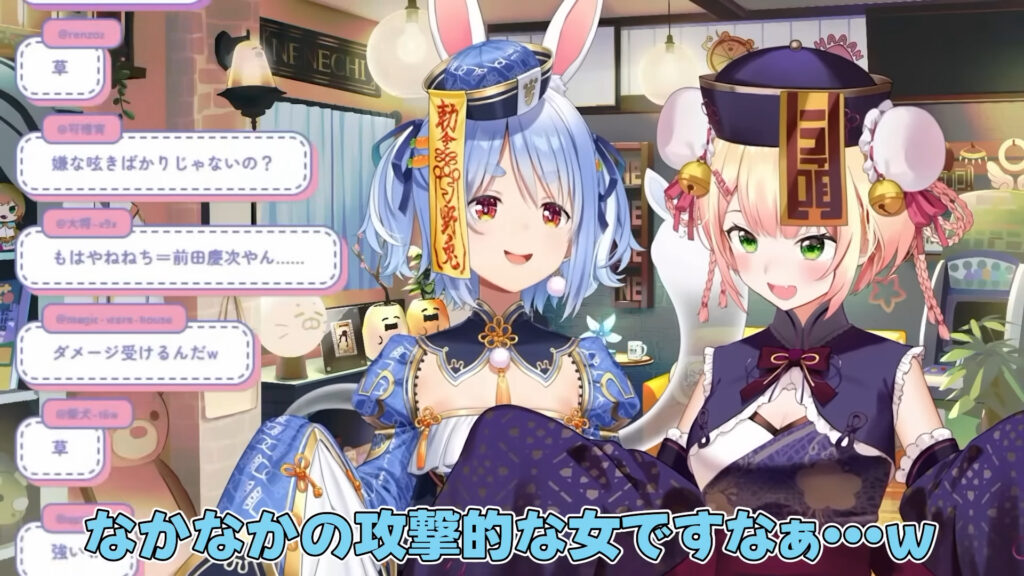 ぺこらさんは「桃鈴さんなかなかの攻撃的な女ですな」というツッコミをしていた。