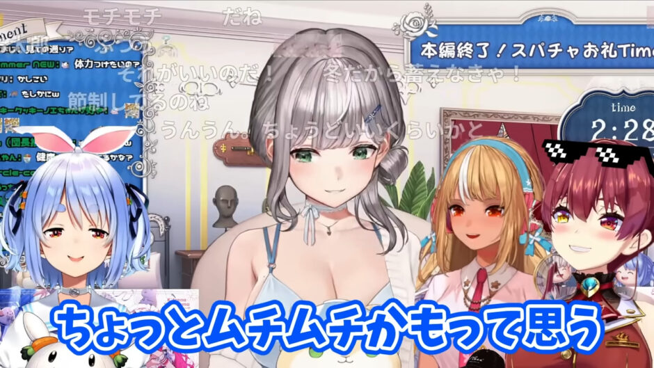 「他の3人が細すぎるんだよね」「ハーフエルフもいるしさ。うさぎちゃんもいるしさ」とメンバーの特徴に触れつつ、「団長ムチムチだなって思う」と素直な心境を吐露しました。