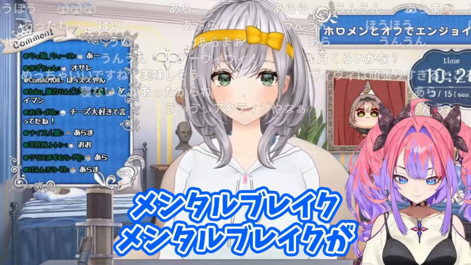 白銀ノエルが15日の自身の配信で、ホロライブの後輩である綺々羅々ヴィヴィ(FLOW GLOW)と食事に行った際のエピソードを語りました。