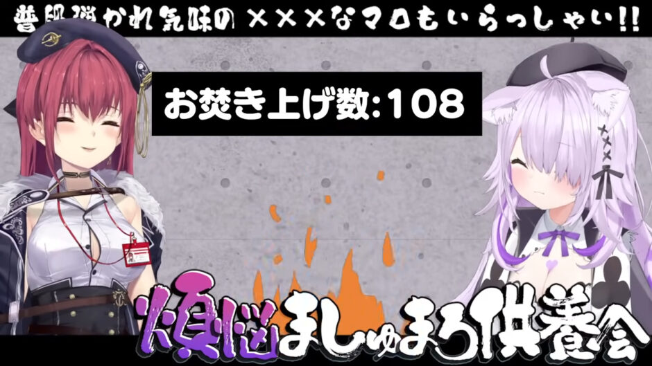 毎年年末の楽しみとして定着している、猫又おかゆさんと宝鐘マリンさんによる「煩悩」をテーマにしたコラボ配信。リスナーから寄せられた匿名メッセージ「マシュマロ」をもとに、フェティシズムや欲望について赤裸々に語り合うこの企画は、毎回高い同時接続数を記録する人気コンテンツです。