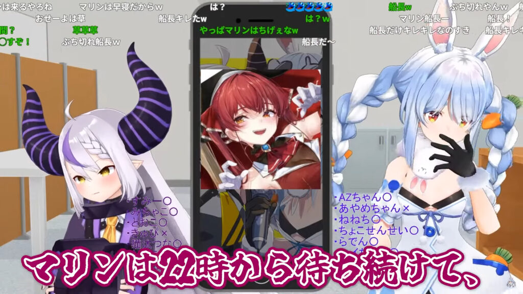 ぺこらさんが後半に電話をかけたのは、同期の宝鐘マリンさん。