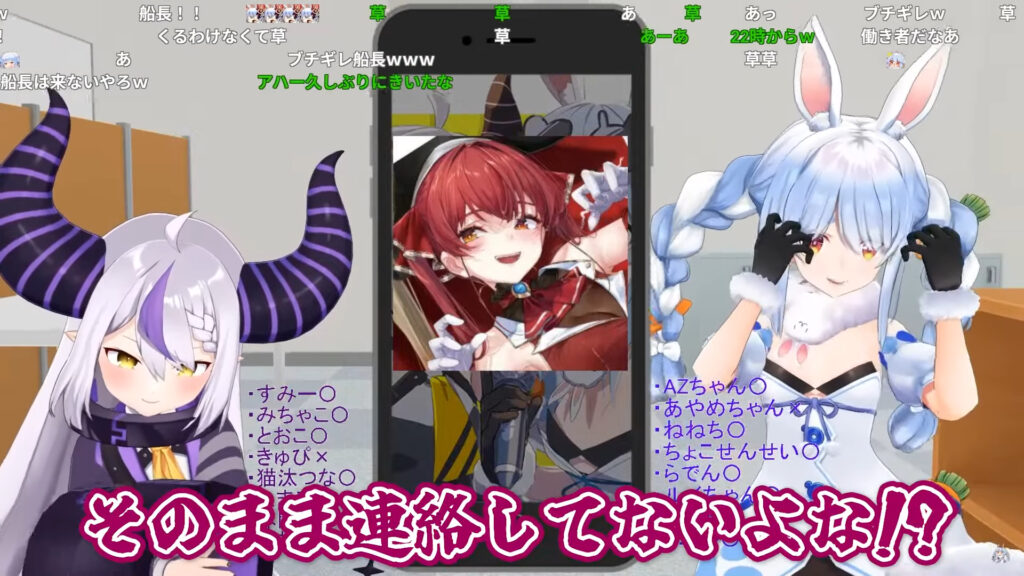 ぺこらさんとラプラスさんが、次々と色んな人に電話をかけていきました。