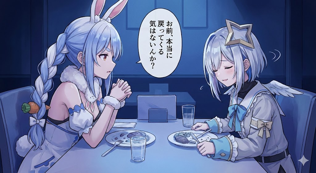 兎田ぺこら、卒業した天音かなたとご飯へ――「本当に戻ってくる気はないのか」と問いかけた夜の話