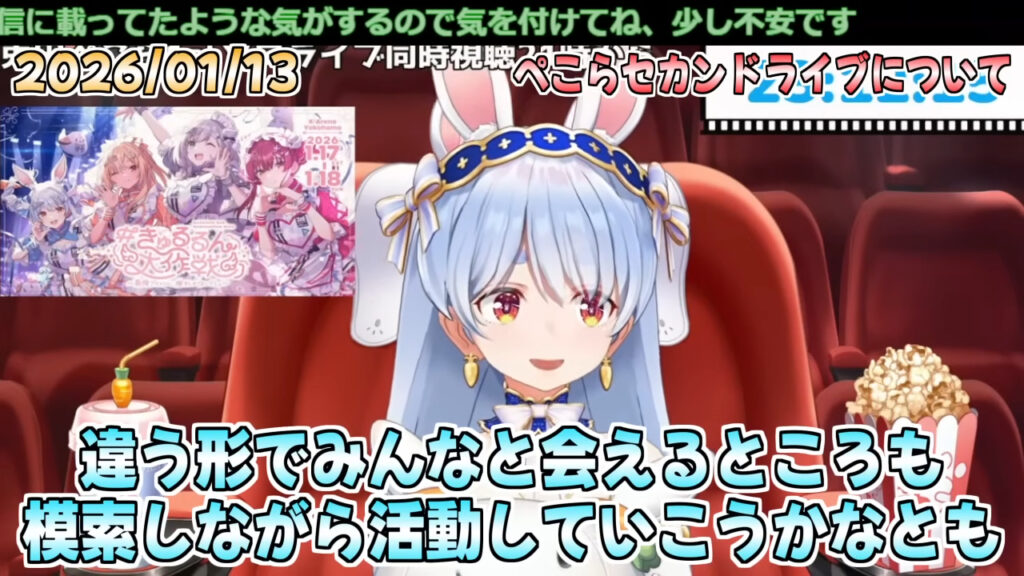 ぺこらはこの気持ちを持ちながらも、「ライブじゃなくてもファンと会える方法を模索したい」として、ファンミーティングのような形式も視野に入れて活動していく考えを示していました。
