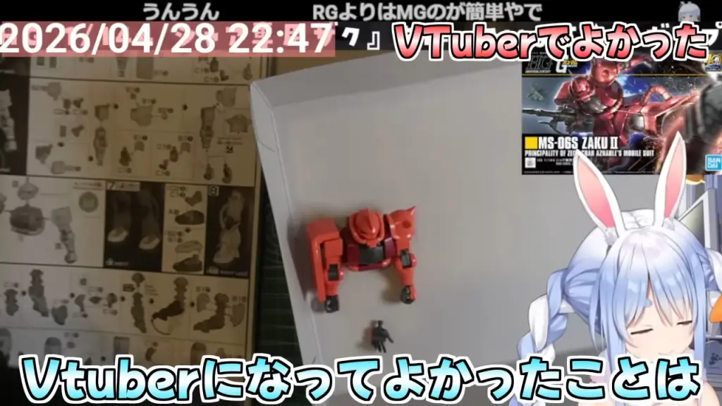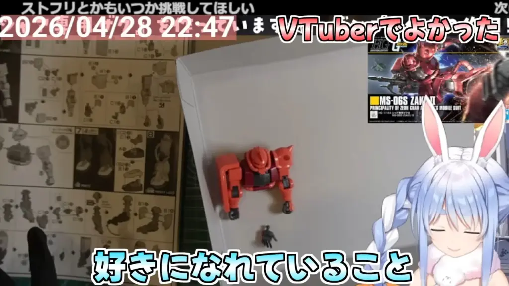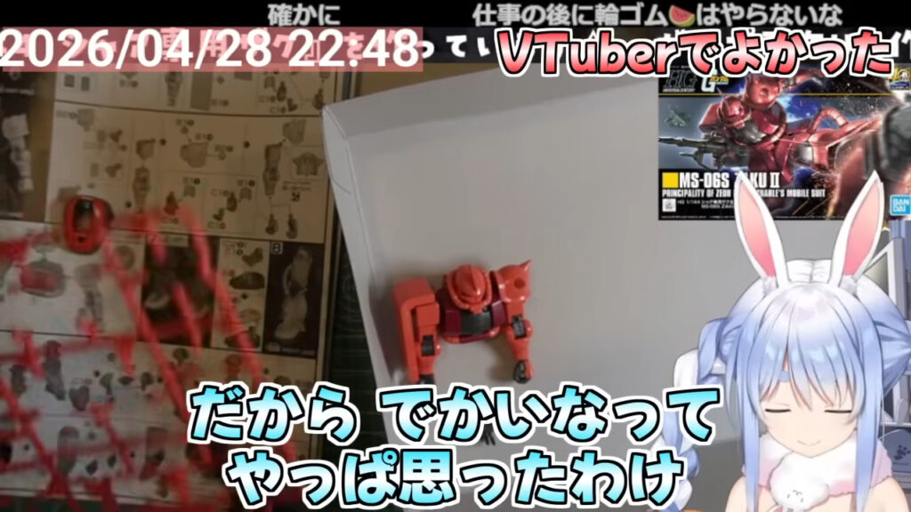 ホロライブ所属のVTuber・兎田ぺこらさんが、2026年4月28日に行ったガンプラ製作配信で、自身の活動と趣味について本音を語りました。